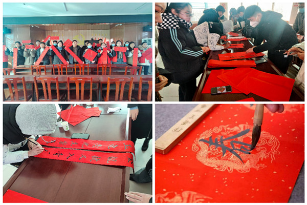 为学习弘扬传承中国优秀传统文化,禁忌书屋 积极组织青年开展“承民俗,品年味,文化进万家”主题实践活动,同学们“贴对联、挂灯楼”“包饺子、做年夜饭”“赏花灯、游锣鼓”“逛新春庙会”等,充分感受辞旧迎新、阖家团圆的文化内涵,共享欢乐中国年;在“浓浓福气迎新年”义务写春联活动中,同学们走进社区、居民家中,挥毫泼墨、奋笔疾书,认真地写下一幅幅寓意吉祥的春联和“福”字,为社区群众送上饱含吉祥如意的春联、福字,在浓浓“福”气中共迎兔年新春。