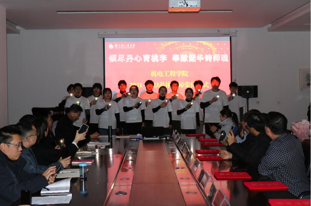 接着,刘国豪、李浩为罗国富教授、陈鹿民教授、李育文教授、裴旭明教授、姚建松副教授、宋学谦副教授、郭长江副教授、张友阳老师、李安生教授、何培英教授、杨改云副教授、谢欢老师等12名荣退教师颁发了荣誉证书。学生代表为荣退老师们献上了鲜花。学院班子成员与荣退教师合影留念。20多名学生代表由辅导员张东旭领唱,专门为老师们献歌一曲《凤凰花开的路口》,在感人至深的歌曲旋律和点点星光中表达了对老师们的深深敬意与感谢。